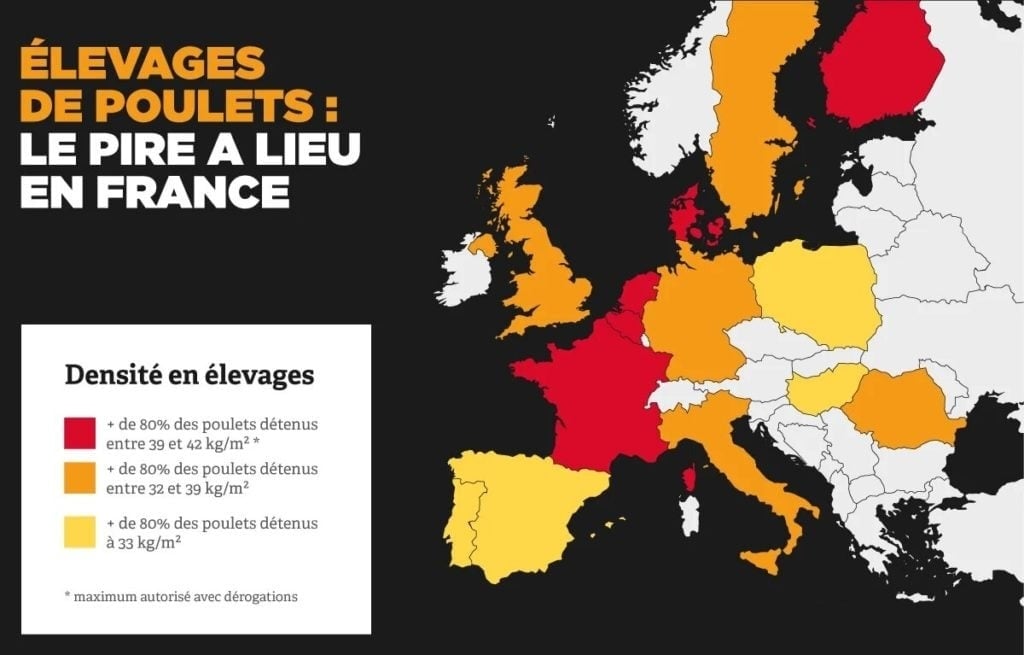 Depuis 2007, l’élevage des poulets de chair est encadré par une directive européenne de protection animale6, entrée en application en 20101.